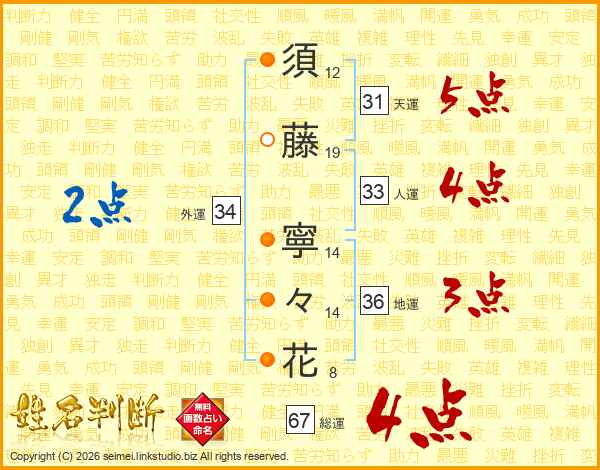須藤寧々花さんの総運は67画の4点!