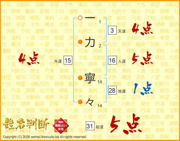 一力寧々さんの総運は31画の5点!
