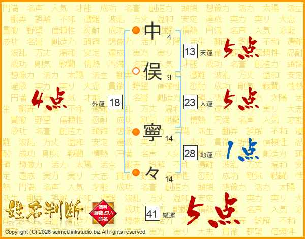 中俣寧々さんの総運は41画の5点!