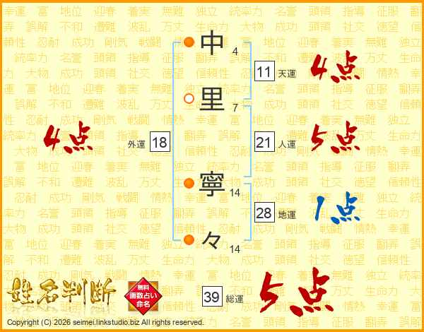 中里寧々さんの総運は39画の5点!