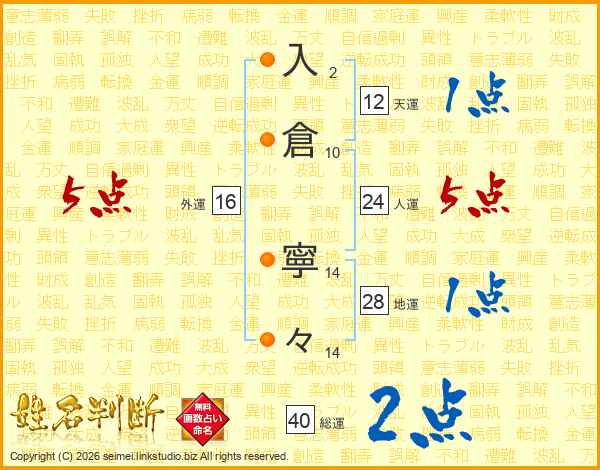 入倉寧々さんの外運は16画の5点!