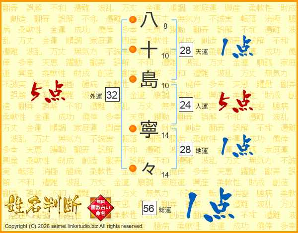 八(8画)十(10画)島(10画) 寧(14画)々(14画)