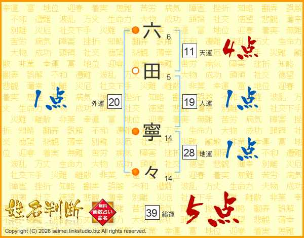 六田寧々さんの総運は39画の5点!