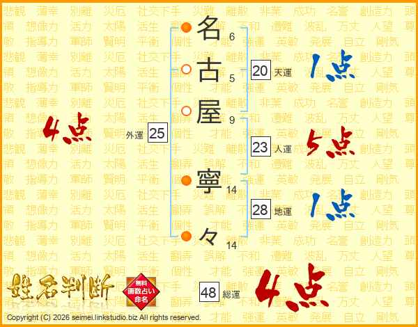 名古屋寧々さんの総運は48画の4点!