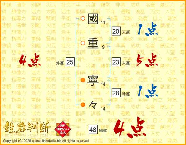 國重寧々さんの総運は48画の4点!
