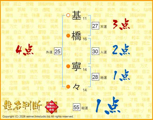 基(11画)橋(16画) 寧(14画)々(14画)