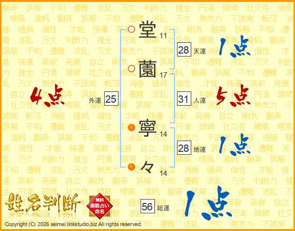 堂(11画)薗(17画) 寧(14画)々(14画)