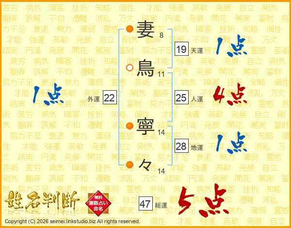 妻(8画)鳥(11画) 寧(14画)々(14画)