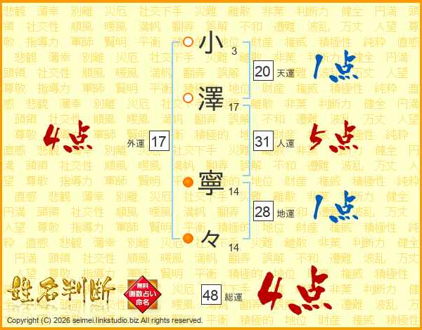 小澤寧々さんの総運は48画の4点!