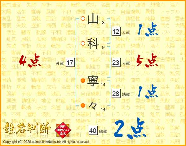 山科寧々さんの総運は40画の2点!