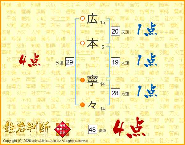広本寧々さんの総運は48画の4点!