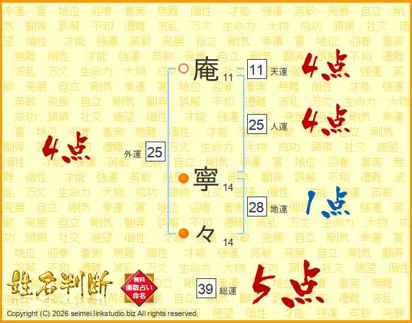 庵寧々さんの総運は39画の5点!