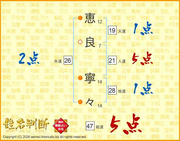 恵(12画)良(7画) 寧(14画)々(14画)