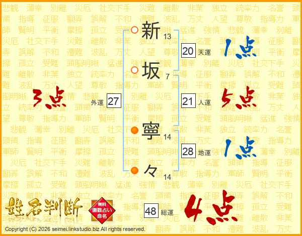 新坂寧々さんの総運は48画の4点!