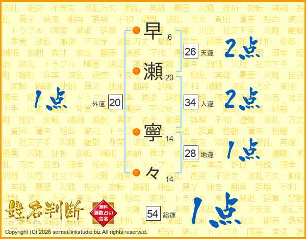 早瀬寧々さんの総運は54画の1点!