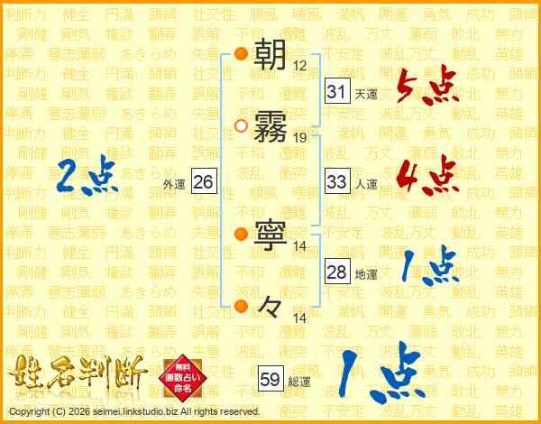 朝(12画)霧(19画) 寧(14画)々(14画)