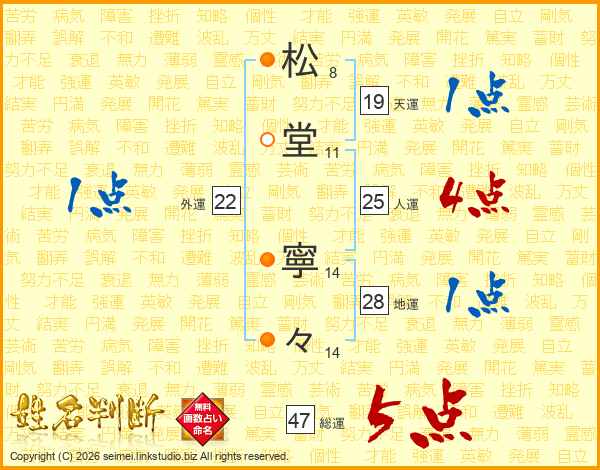 松(8画)堂(11画) 寧(14画)々(14画)