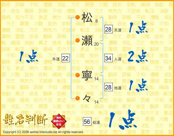 松瀬寧々さんの総運は56画の1点!