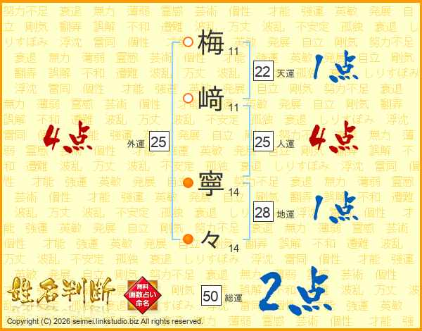 梅﨑寧々さんの人運は25画の4点!