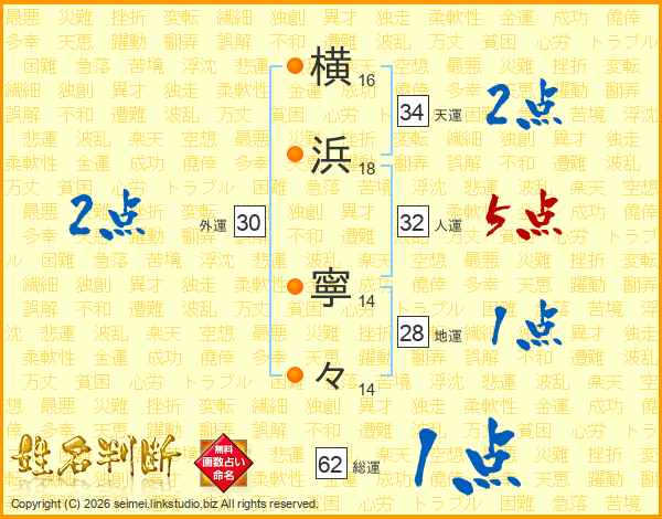 横(16画)浜(18画) 寧(14画)々(14画)