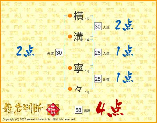 横溝寧々さんの総運は58画の4点!