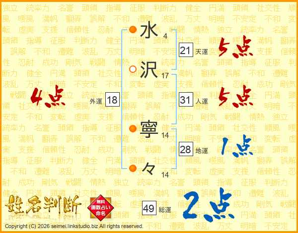 水沢寧々さんの総運は49画の2点!