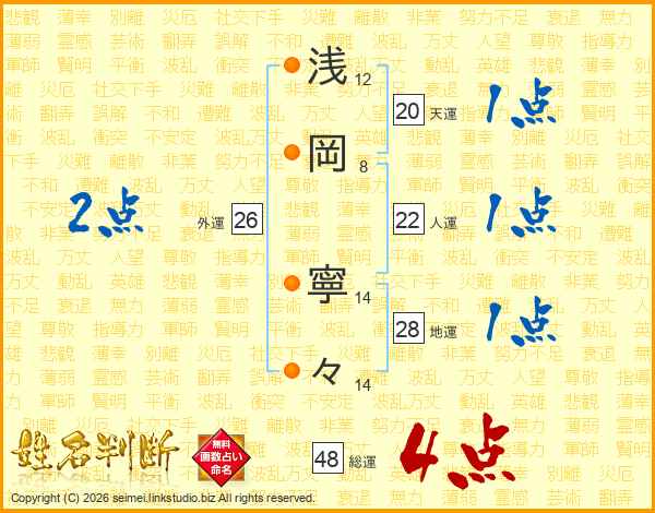 浅岡寧々さんの総運は48画の4点!