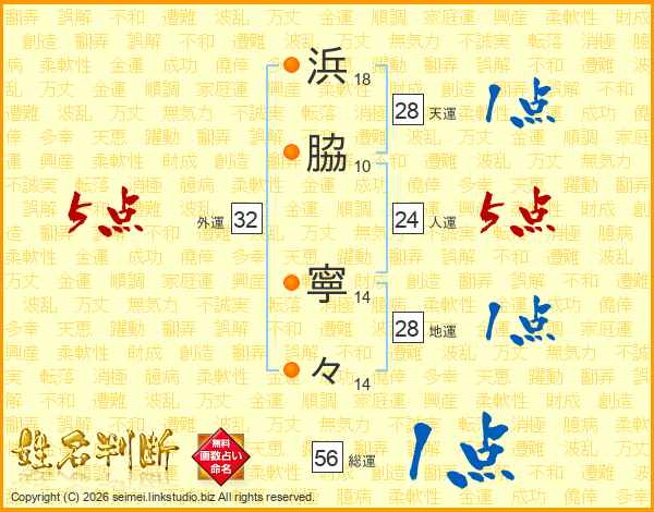 浜(18画)脇(10画) 寧(14画)々(14画)
