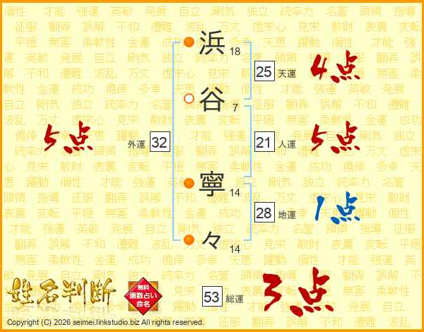 浜谷寧々さんの外運は32画の5点!