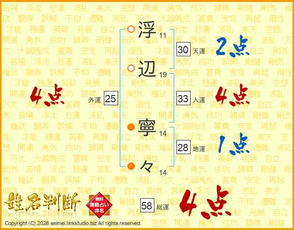 浮辺寧々さんの総運は58画の4点!