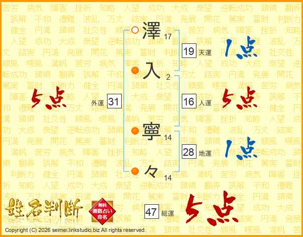 澤入寧々さんの総運は47画の5点!