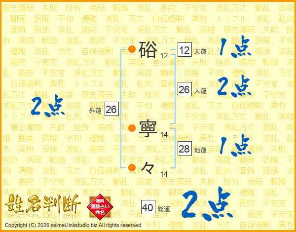 硲寧々さんの総運は40画の2点!