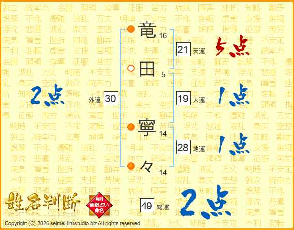 竜田寧々さんの天運は21画の5点!