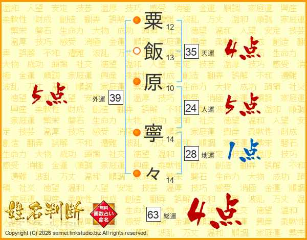 粟(12画)飯(13画)原(10画) 寧(14画)々(14画)