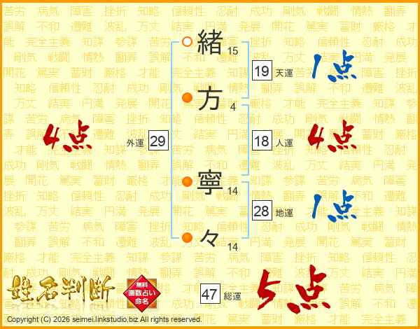 緒方寧々さんの総運は47画の5点!