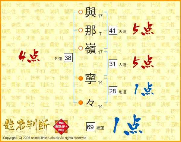 與那嶺寧々さんの外運は38画の4点!