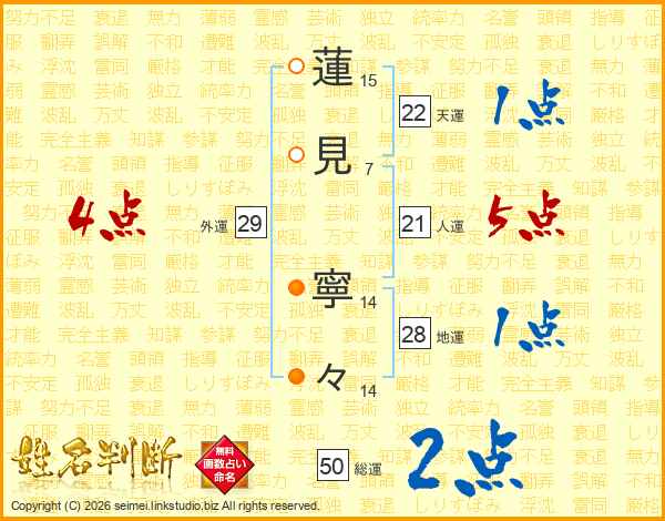 蓮(15画)見(7画) 寧(14画)々(14画)