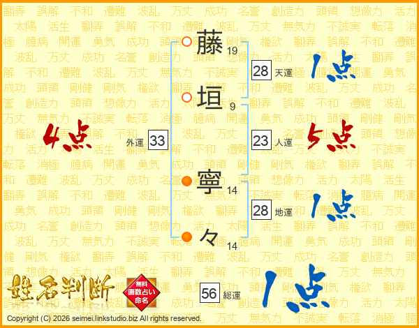 藤垣寧々さんの外運は33画の4点