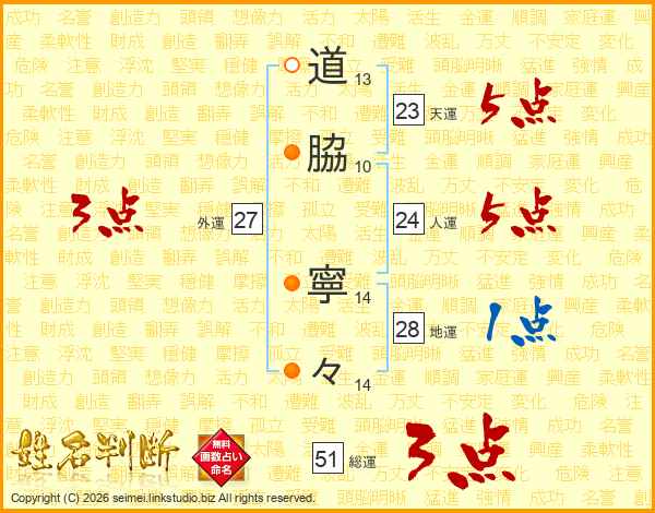 道脇寧々さんの天運は23画の5点!