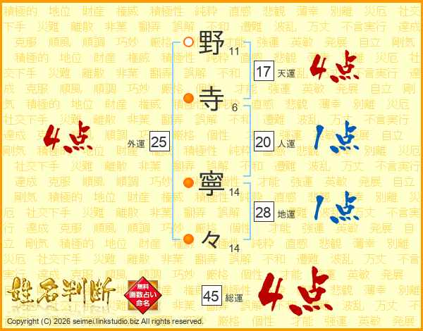 野寺寧々さんの総運は45画の4点!