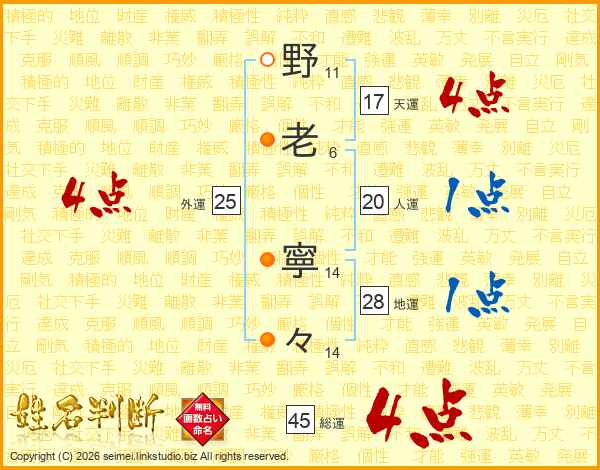 野老寧々さんの総運は45画の4点!