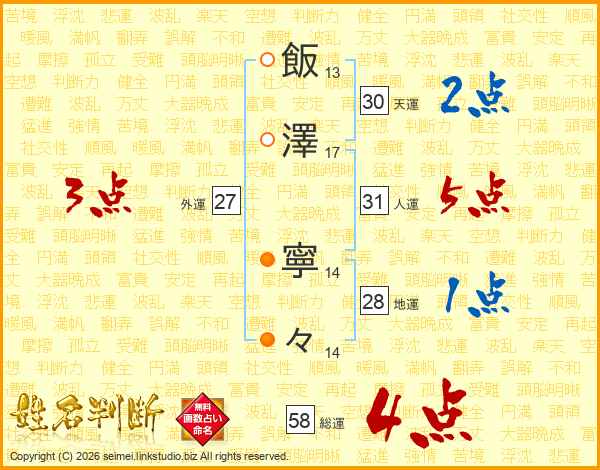 飯澤寧々さんの総運は58画の4点!