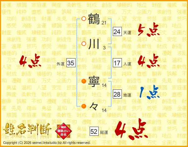 鶴川寧々さんの総運は52画の4点!