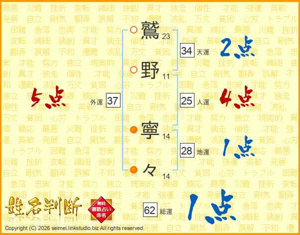 鷲(23画)野(11画) 寧(14画)々(14画)