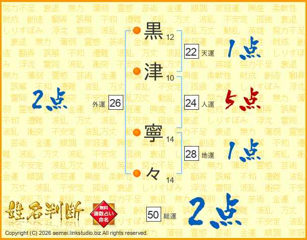黒(12画)津(10画) 寧(14画)々(14画)