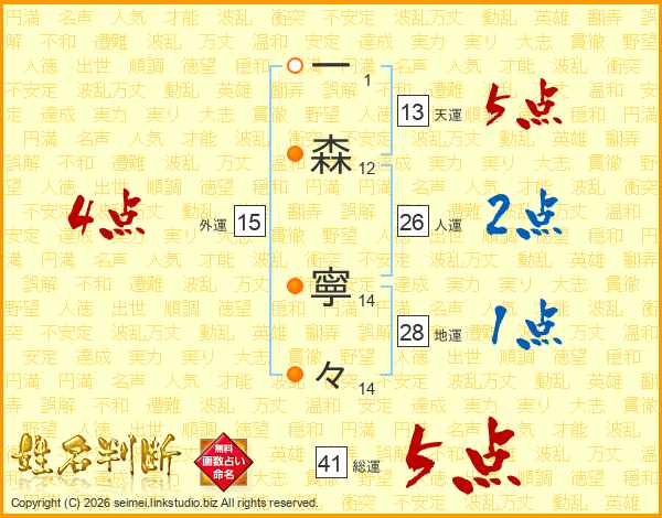 一森寧々さんの総運は41画の5点!