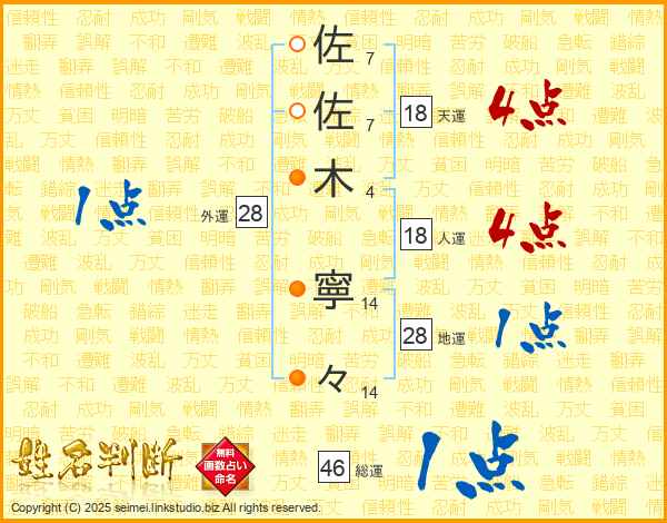 佐(7画)佐(7画)木(4画) 寧(14画)々(14画)
