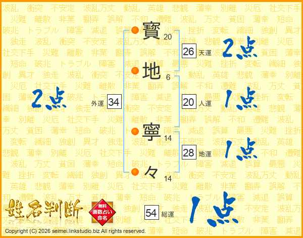 寳(20画)地(6画) 寧(14画)々(14画)