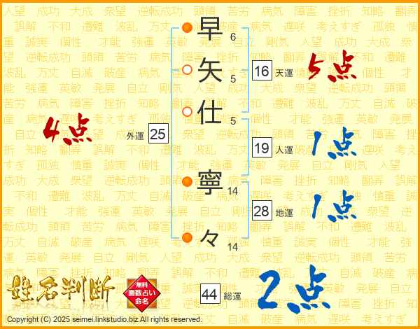 早矢仕寧々さんの総運は44画の2点!