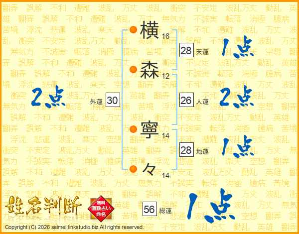 横森寧々さんの人運は26画の2点!